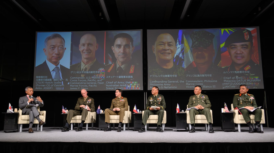 磯部氏は、陸上自衛隊 東部方面総監をはじめとした要職を歴任した経験を踏まえ、「インド太平洋地域の平和と安定のための陸軍種の多国間連携」をテーマとするパネルディスカッションをモデレーターとして牽引し、米海兵隊、豪陸軍、